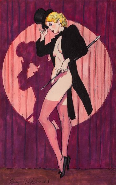 Editor: So, here we have Patrick Nagel's "Standing Nude," most likely an acrylic and drawing piece, and its graphic simplicity is immediately striking, with strong outlines and flat color. There is an interesting mood; aloof but strangely inviting... like a still from a music video. How do you interpret this work in the context of its time? Curator: You know, when I look at this, I'm transported straight back to the '80s, to the pages of *Playboy* where Nagel was a regular. There's a cool detachment in the woman's gaze, and it's all about sleek surfaces and suggestion rather than blatant exposure. Nagel took inspiration from art deco—did you catch the geometric shapes and stylized forms hinting at that? And in her attitude... don’t you sense some connection to Warhol's pop art? The woman is more of a logo than a person, which actually gives her power. Do you think she appears to be in control? Editor: That’s a fascinating connection, I do see it now, that stylized nature transforms the individual into more of an ideal. I can't tell whether she’s truly empowered or just a constructed ideal *of* empowerment... Curator: Exactly! And there lies the delicious ambiguity, right? We're left to wonder about her inner life while being undeniably captivated by her outer shell. Nagel captures that cultural fascination perfectly; it is visually accessible but rich in content. A real snapshot of its moment! Editor: It's been incredibly helpful to see Nagel’s image placed within that socio-historical setting. I see the Neo-Pop, art deco, portrait, drawing and acrylic connections now too! Thanks!