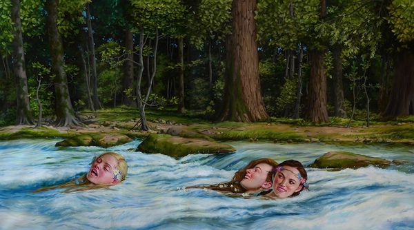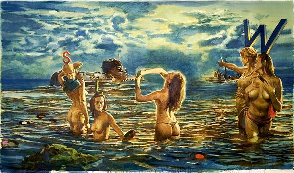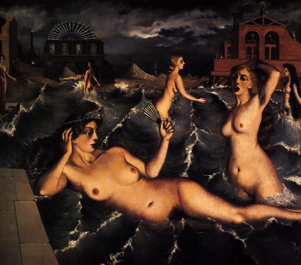 Jana Brike painted "Dark Waters," sometime after 1980, but with what, exactly, I'm not sure; there's a layered, glazed finish that evokes oil, but also something else entirely. It gives the whole painting this dreamlike quality, like memory mixed with a bit of mythology. Look at the water, how she builds up these waves with such short, confident strokes. It’s like she’s wrestling with the paint, trying to capture this wildness, but at the same time, there's a sense of control. Then, these figures emerging from the water, all softness and light. The contrast is striking; the cool blues of the sea against the warm pinks of their skin. It's interesting to think about how Brike sets up a conversation between a more classical style of figurative painting and a looser, more experimental approach to rendering the natural world. Like Paula Rego or perhaps Francesca Woodman, Brike uses the female form to create images that are both beautiful and subtly unsettling. It’s a reminder that art is never really finished, just an ongoing process of questioning and reimagining.