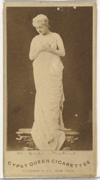 This photograph of Cora Parker comes to us from a series of collectible cards, distributed with Virginia Brights Cigarettes. The cards were a chromolithograph, a color printing technique that uses multiple lithographic stones, each applying a different color to the final print. The process demanded skilled labor to achieve a high-quality image, and the choice of this method reflects the marketing strategy to associate cigarettes with sophistication and luxury. What is more, though the image presents an actress, the card itself was a product of factory labor. Think of the many hands involved in growing, harvesting, curing, and processing the tobacco, printing the cards, and assembling the final product. The card's small size and mass-produced nature contrast with the artistry of the chromolithography. These cards blurred the lines between art, advertising, and everyday life, inviting us to consider the complex relationship between artistic expression and the commercial forces that shape our material world.