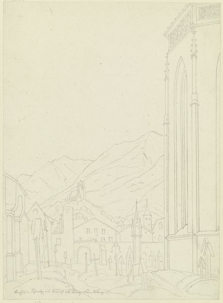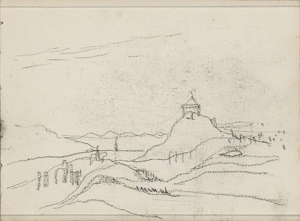 Editor: Here we have Julia Emily Gordon's "A Terrace (after Turner’s ‘Isola Bella, Lago Maggiore’ for Rogers’s ‘Italy’)." It looks like a delicate pencil sketch. The architecture is quite detailed, but somehow, the scene feels dreamlike. What do you make of it? Curator: It whispers, doesn't it? A half-remembered vision of Italy filtered through Turner's romantic haze, then re-imagined by Gordon. There's a yearning here, a longing for a place both real and imagined. What does Italy mean to you in this sketch? Editor: Hmm, a place of beauty, but also maybe a bit distant or unattainable, given the medium. So, it's about longing? Curator: Precisely! And perhaps the act of copying is a way of possessing the original artist's vision, like whispering a secret across time. I find it charming and melancholy. Editor: I hadn't considered that before. Thanks! Curator: My pleasure. It's all about seeing with new eyes, isn't it?