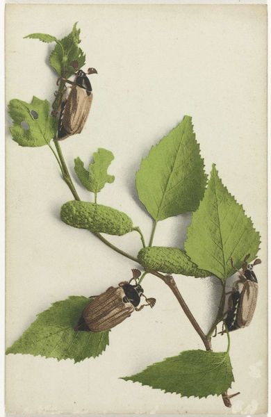 Willem van Leen made these "Studies van wingerdbladen" or "Studies of vine leaves" with pen and watercolor. Van Leen lived during the late 18th and early 19th centuries, a time marked by significant shifts in social structures and scientific exploration. This work, which is a careful observation of nature, reflects the period’s interest in botany and natural history. There is a quiet stillness here, yet it speaks to the artist's relationship to the land. Van Leen was working in a society where class greatly affected access to both art and education, his detailed study could have been part of a larger project, perhaps scientific or educational. The soft watercolors create a sense of tranquility, while the wilting and discoloring leaves remind us that the beauty of the natural world is often fleeting. It asks us to consider the role of nature in our lives and the cycle of growth and decay.