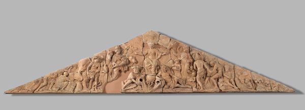 Editor: Here we have Clodion’s marble relief, "Children and Satyr Children with a Pantheress and Her Cubs," dating back to the late 1770s or early 1780s. I’m immediately struck by the joyous chaos of it all – the sheer number of figures crammed into this scene. What narrative or mood do you think Clodion was aiming for with this piece? Curator: Chaos, yes, a beautiful organised chaos! To me, it's like stumbling upon a Bacchanalian revelry – imagine tiny gods, cherubs even, finding mischief in a sun-drenched forest. This feels deeply Rococo. Playful eroticism mixed with an idealized pastoral fantasy, right? Do you see how the high relief practically spills out towards the viewer? Almost bursting with vitality. It's far from stuffy. More like…naughty nymphs escaping a Titian painting! Editor: Naughty nymphs, I love that! The detail is amazing; you can almost feel the texture of the pantheress's fur. Do you think the panther has a particular significance or is it mostly about aesthetic embellishment? Curator: A pantheress with cubs would evoke fertility and maternal power. Here, the animal becomes just another plaything in this wild fantasy, where the divine mingles with the animal in this sculptural daydream. Do you find her scary at all? Editor: Not at all! It all seems like a game. And this gives me such a fresh understanding of rococo art! Curator: Exactly! Gone is the rigid posing of court portraiture, only boundless playful abandon remains!
