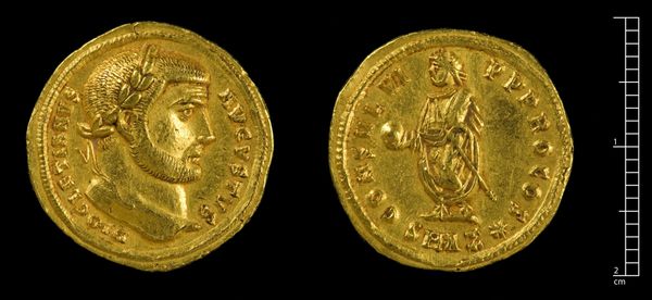 Curator: Here we have a gold aureus coin of Septimius Severus from ancient Rome. It's fascinating how this small object reflects the power dynamics of its time. Editor: Wow, it practically glows! It's like holding a piece of the sun – so tactile, even just seeing it. Curator: These coins served not only as currency but also as propaganda. Septimius Severus used them to disseminate his image and legitimize his rule following a period of civil war. Editor: I wonder what it felt like to be handed one of these back then. Did people feel a surge of loyalty just looking at the emperor's face? Or did they just see its monetary value? Curator: It's likely both. Currency and representation were deeply intertwined. The portraits, inscriptions, and even the gold itself all conveyed messages about Roman authority and prosperity. Editor: Makes you think about how we project power today, and what objects will tell our story centuries from now. Perhaps a smartphone? Curator: Indeed, tracing the lineage of power through objects like this coin offers a unique lens to understand societal structures. Editor: It's amazing how something so small can hold so much meaning. A tiny window into a vast empire.