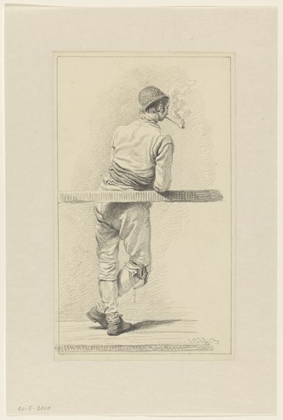 Joannes Pieter Visser Bender rendered this drawing of a young man smoking a pipe with graphite. The pipe, a slender, unassuming object, carries within it a rich history of ritual, contemplation, and social interaction. Consider how the act of smoking, historically linked with indigenous cultures, found its way into European society, transforming from a sacred practice to a commonplace indulgence. The smoke itself, ephemeral and transformative, mirrors the transience of life and the ever-changing nature of symbols. This echoes in Dutch Golden Age paintings where pipes signified both worldly pleasures and their fleeting nature. The pose of the figure, leaning thoughtfully, harkens back to classical depictions of melancholic figures or philosophers in contemplation, inviting viewers to ponder deeper meanings. This connects to the psychological weight of the image as a powerful force engaging viewers on a subconscious level. Such non-linear, cyclical progression of symbols resurfaces, evolves, and takes on new meanings in different historical contexts.