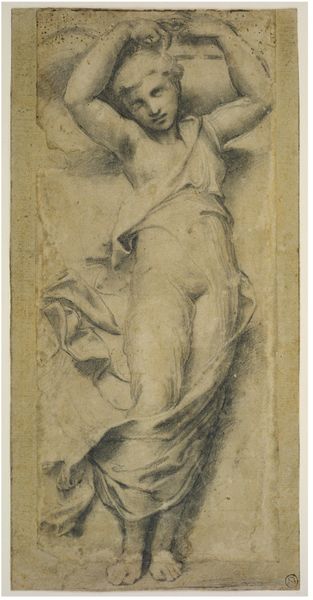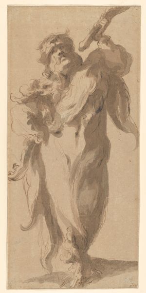 This drawing depicts Saint Margaret of Cortona, her form rendered in delicate ink washes, and radiates with divine light. Her crossed hands, pressed against her breast, signal repentance, a gesture echoing across centuries. This posture harkens back to ancient votive figures, where supplicants offer themselves to the divine. We see it mirrored in countless images of saints and grieving Madonnas. The halo, a symbol of enlightenment, traces back to pagan sun deities, repurposed here to signify spiritual transcendence. Even the presence of the dog at her feet is a fascinating motif; a symbol of loyalty, it also hints at her past life as a sinner. This act of contrition has a psychological weight, engaging viewers on a subconscious level. The motif of hands crossed over the chest is a visual echo chamber, revealing the enduring power of symbols across time.
