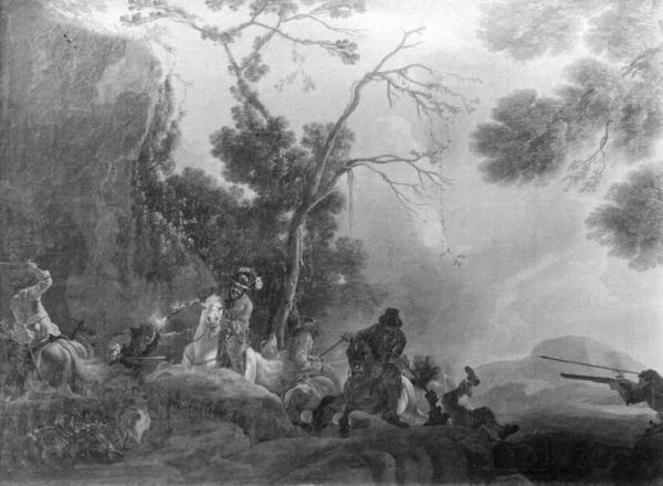 Editor: So, this is Nicolas Antoine Taunay's "The Show (La Parade)", painted in the late 1780s. It's an oil painting and feels almost like a faded memory. The figures seem caught between action and stillness. What do you see when you look at it? Curator: A world simmering with anticipation. Taunay captures that fleeting moment before the curtain rises – or in this case, perhaps before a grand pronouncement. It reminds me of a half-remembered dream, filtered through classical ideals. Do you notice how the figures are arranged? Almost like actors on a stage even before the performance begins. Editor: Yes, there’s a very theatrical quality. Almost like he’s playing with our sense of perspective. Is that typical of Neoclassical painting, to stage a scene in this way? Curator: Precisely. Neoclassicism often looked to classical antiquity for inspiration, emphasizing order and reason. But Taunay injects this delightful human element. You see the artist acknowledging the observer - us - almost breaking that fourth wall between the artwork and it's audience. Editor: It feels… softer than I expected, knowing it's Neoclassical. More like a sketch for something larger. Curator: Perhaps. It might have been intended as a preparatory study for a more grandiose piece or maybe Taunay simply aimed to capture an immediate, visceral feeling. Either way, it works, doesn’t it? He caught a moment in time like lightning in a bottle, ready to enchant audiences to this day! What do you take away from it now? Editor: That even within a very structured art movement like Neoclassicism, there's room for capturing the unexpected moments, those blurry in-between spaces. Curator: Exactly! That's the beauty of art history; it is so wonderfully nuanced. We come searching for absolutes, and find only dazzling complexity!