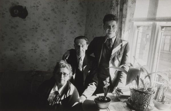 Editor: This is Walker Evans' "Subway Portrait," a gelatin silver print made between 1938 and 1941. What strikes me is how the faces, especially their eyes, are so intense and unguarded. What do you see in this piece? Curator: These faces...they're a visual echo of a very specific era. Consider the time: pre-war America, the lingering effects of the Depression. There's a stoicism etched into their features, wouldn't you agree? It's almost a collective memory made visible. Editor: I see that, yes. Is that why Evans focused on such ordinary subjects, these riders? Curator: Exactly! It's the everyday, rendered iconic. The subway itself... it is a symbolic space, a democratizing vessel carrying a cross-section of society. Look at the details: the woman's hat, the newspaper, even the grimy surface of the train. These details speak volumes about their lives, their hopes, their worries. Notice the contrast between the woman with the hat and the woman with the newspaper. How do they communicate to you? Editor: The woman with the hat seems more... composed, I guess. Maybe guarded. The other seems weary. Both dignified. Almost timeless. Curator: And it *is* timeless, isn't it? The emotional weight of human experience transcends the immediate historical context. Their faces become universal symbols of resilience, of perseverance, of the human condition itself. Even the monochrome tones add to that, stripping away distractions to reveal the raw essence of their being. Editor: I see it now. It's not just a picture of two women on a subway; it's a picture of something much bigger. Curator: Precisely. It's a glimpse into the soul of a generation, conveyed through visual language. A powerful statement about who we were, and perhaps, who we still are.