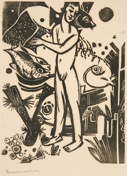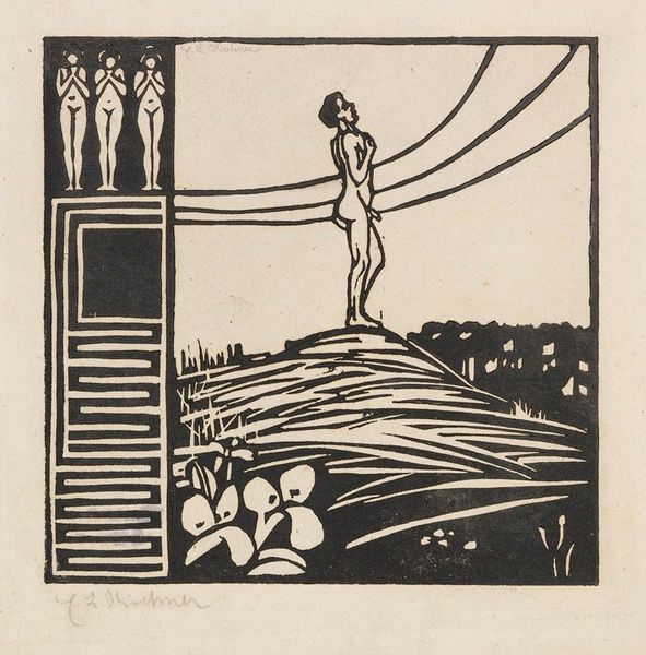 Mikuláš Galanda made this woodcut, “Woman in the Country,” sometime in the early 20th century, and you can feel that folk art ethos in every mark. The stark contrast between black and white isn't just about seeing; it's about feeling the cut of the wood, the artist's hand pushing through the material. Look at the woman's dress, how the circles pop against the dark fabric. They are almost playful in their simplicity, yet they give the figure weight. Galanda's marks aren't trying to trick you into thinking this is a real place, but there is an honesty in the way that the image is presented that makes you feel connected to the scene, as if this is what the Slovakian countryside *feels* like. This reminds me of Ernst Ludwig Kirchner’s woodcuts, who also looked back to the folk art tradition, with the same kind of raw energy and emotional honesty.