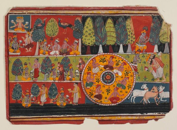 Editor: This is "Painted Chest, Michoacan," dating from between 1935 and 1942. It's a vibrant mix of drawing, painting, and other media. It reminds me of a folk mural. What strikes you about this piece? Curator: The chest presents an intriguing dialogue between tradition and modernity. The imagery—the Mexican flag, colonial architecture—seems to be consciously grappling with ideas of national identity and history in post-revolutionary Mexico. Editor: In what ways? Curator: Consider the indigenous folk-art style alongside those European-style buildings. Doesn't it prompt questions about cultural hierarchies, about who gets to represent the nation, and what symbols are chosen? Who was this chest made for, and what stories was it meant to tell about Mexican identity in that era? Editor: So, you're suggesting that this seemingly simple chest might be making a statement about the complexities of Mexican identity, mixing pride with maybe a little critique? Curator: Precisely! The layering of symbols—indigenous art practices with representations of power and imported cultural references—opens a space for exploring how national narratives are constructed, and often contested, within visual culture. The symbolism definitely reveals those types of power dynamics. Editor: I see what you mean. It's not just a decorative object; it's a historical document in a way, capturing a specific moment and its tensions. Curator: Absolutely. It encourages us to question the role of folk art in shaping national consciousness, particularly in relation to issues of class, race, and colonial legacies. Editor: Thanks. I definitely have a deeper appreciation for this folk art now. Curator: I think situating art objects like this within historical contexts opens up richer conversations about representation.