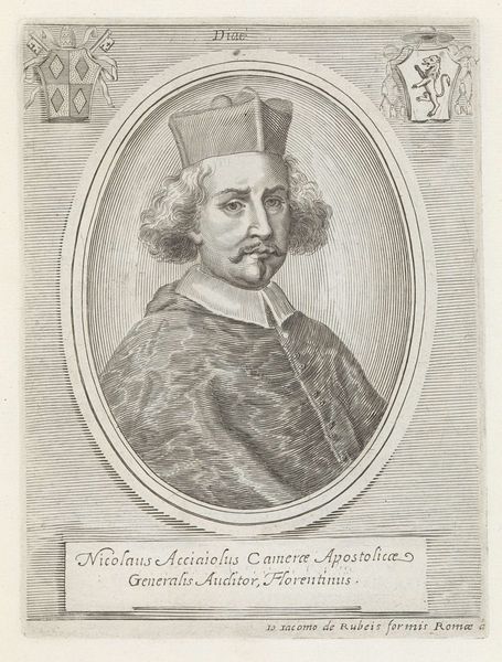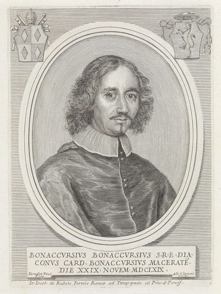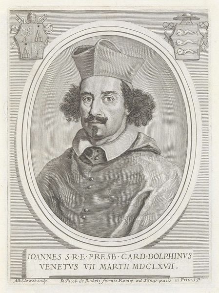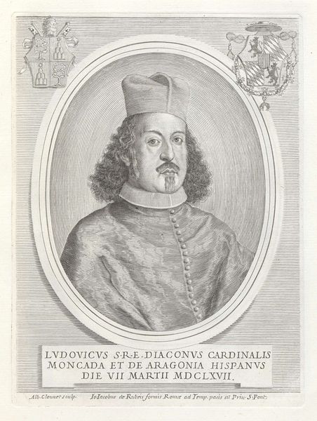 Albertus Clouwet created this portrait of Cardinal Leopoldo de' Medici as an engraving in 1667. Dominating the image are heraldic symbols, specifically the Medici coat of arms, which are visual testaments to lineage and power. Note the repetition of geometric shapes and patterns. This visual language has roots stretching back to ancient cultures, where similar forms represented cosmic order and divine authority. Consider the lozenge shapes on one coat of arms, echoing the diamond patterns found in textiles from ancient Persia, where they symbolized protection. These symbols transcend their immediate context, tapping into a collective memory. Such symbols, passed down through generations, morph and adapt, accumulating layers of meaning. The repetition of form acts almost as a cultural tic, revealing the subconscious influence of history on artistic expression. This piece serves as a potent reminder of the enduring power of symbols to evoke deep-seated emotions and connect us to the past.