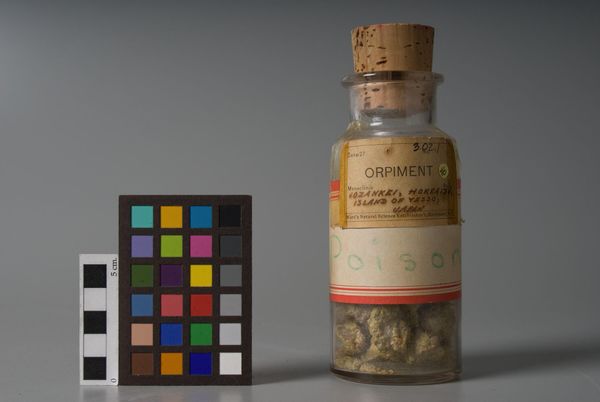Editor: Here we have Quercitron Bark, made by Skilbeck Brothers. It looks like bark inside of a jar. It has a slightly clinical, scientific feeling... What do you see in this piece? Curator: It's a bit like a time capsule, isn’t it? That bark, trapped since 1923, whispering secrets of London’s past. I wonder, what stories could it tell us about dyes, textiles, even the very air of that era? Editor: So, it’s more than just dried tree stuff? Curator: Absolutely! It’s a portal. Perhaps it even makes you think about what we choose to preserve, and what we leave behind. Editor: I never thought about it that way, but it does put things in perspective. Curator: Precisely. Art, even in a humble jar, challenges us to look deeper, doesn't it?