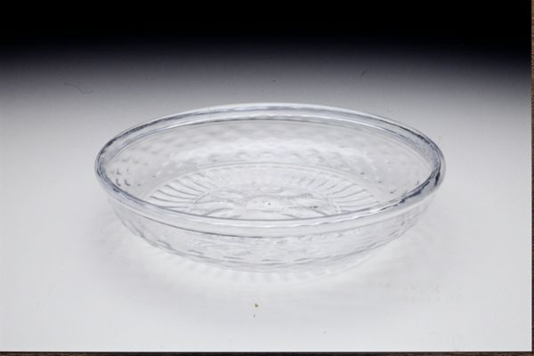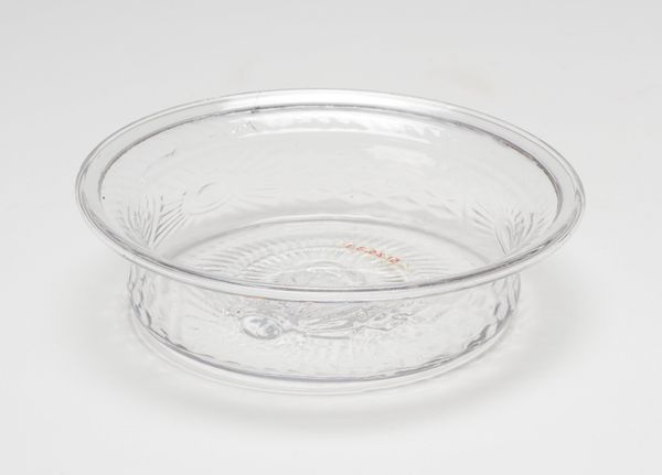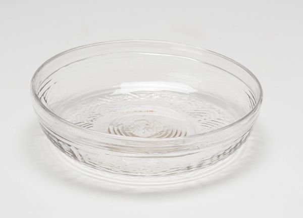 This pressed-glass bowl offers an interesting window into the democratisation of design. Without knowing its date or origin we can still ask important questions about how it came to be made. Machine-pressed glass, as opposed to hand-blown, allowed for the mass production of decorative objects during the industrial era. Designs that would once have been exclusive to the wealthy could be replicated and distributed to a much broader segment of society. This seemingly simple bowl speaks to changing social structures. The original design could have drawn on older, more exclusive forms of glass work. The finished product makes that design newly accessible. To learn more, we might consult historical trade catalogues and museum collections. These resources provide us with an understanding of the changing landscape of design and consumption during this period of industrial innovation.