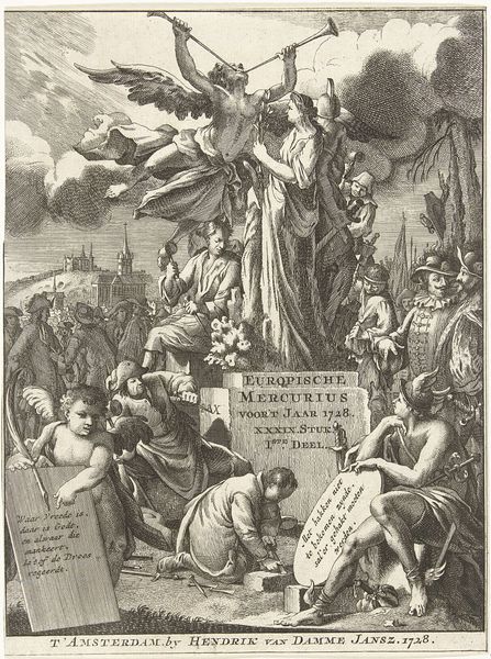 Jan Ruyter created this title page for the Europische Mercurius of 1731 as an etching. The Europische Mercurius was one of the most important Dutch periodicals of the 18th century, offering a window into the political and cultural happenings across Europe. Consider the central figure, Mercury, the Roman god of commerce, communication, and travel. He stands as a symbol of the era's burgeoning trade networks and the rapid dissemination of news. To the left and right, female figures represent abundance and peace, reflecting the era's aspirations for prosperity and stability. The inclusion of portraits and Latin inscriptions suggests an appeal to an educated elite, deeply immersed in classical traditions. But, how might ordinary people have encountered and interpreted these symbols? Did these images inspire or alienate them? How did they participate in the political and social dialogues of the time? By examining the Europische Mercurius through a contemporary lens, we can gain a deeper understanding of how images shaped public opinion and contributed to the formation of identity.