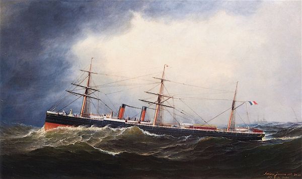 Antonio Jacobsen rendered this oil on canvas painting, "The R.M.S. Gallia of the Cunard Line at Sea," in the late 19th or early 20th century. Jacobsen’s skillful handling of paint brings the Gallia to life. Observe the brushwork capturing the interplay of light on the ship's sails and the turbulent sea, conveying a sense of motion and grandeur. The dark colors and distinct linear strokes reflect the industrial aesthetic of the era, while the ship itself stands as a symbol of progress and technological advancement. However, let's consider the labor involved in the production of the ship. The painting serves as a reminder of the workers who toiled in shipyards and factories, shaping the materials that fueled industrial expansion. The Gallia, therefore, becomes a signifier of the human cost of industrialization. Understanding the painting requires us to recognize the intricate connections between artistry, industry, and social context, and the often invisible labor involved in the making of an artwork.