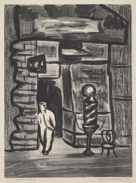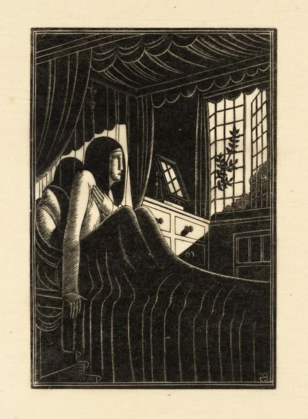 Hobson Pittman made this print, "Moonlit Interior," using stark contrasts of black and white to carve out a nocturnal scene. I love how the process itself is so present here—you can almost feel the artist's hand carefully removing material to let the light in. The texture is what grabs me; the cross-hatched floor feels almost tactile against the smooth expanse of the night sky. That little lamp, perched on the table, becomes a beacon, its stark whiteness a focal point amidst the darkness. I'm drawn to the curtains, how they frame the sliver of moonlit clouds. It's as if Pittman is inviting us to peer into this private, dreamlike space. This print reminds me a little of Edward Hopper’s knack for capturing quiet, introspective moments. Both artists play with light and shadow to evoke a sense of solitude and mystery. Ultimately, "Moonlit Interior" isn't just a depiction of a room, it's an invitation to reflect on the quiet beauty of the night and the stories it holds.