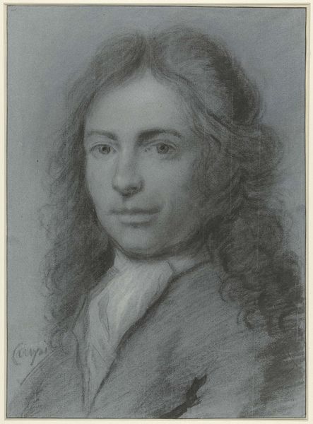 Cornelis van Noorde created this self-portrait with graphite and chalk on paper in the 18th century. The choice of materials here is key. Graphite, derived from mined mineral deposits, and chalk, often sourced from the earth, are humble materials. Their accessibility allowed artists like van Noorde to capture likenesses and expressions with subtle gradations of tone and texture, through layering and blending. Look closely, and you can see the delicate strokes of the graphite pencil, creating the fine details of his face and wig. The soft chalk adds depth and volume, giving the portrait a sense of presence. The weave of the paper itself also contributes to the artwork's texture. While not as glamorous as oil on canvas, the intimacy of drawing has its own rewards, allowing for directness and immediacy. It reminds us that artistic expression doesn't always require expensive materials, but instead, the skillful manipulation of everyday substances. This piece highlights the inherent value and potential found in the simplest of means, emphasizing the importance of process, skill, and the artist's hand.
