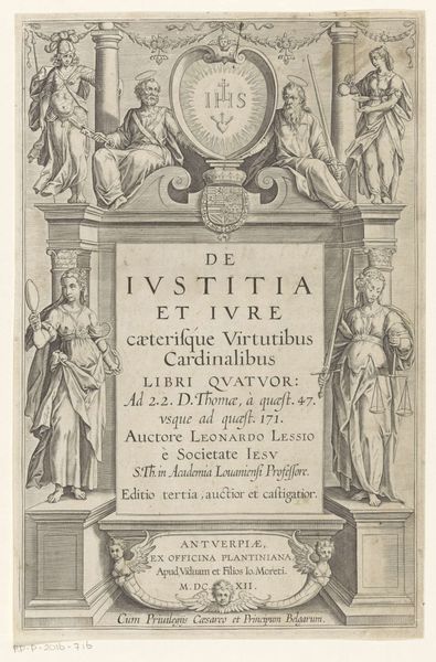 This print, *Petrus, Paulus, Voorzichtigheid en Rechtvaardigheid*, was made in 1605 by an anonymous artist, using the technique of engraving. Engraving is an intaglio process, meaning the image is incised into a plate – usually copper – which is then inked and printed. Look closely, and you can see the crisp precision this method allows. The lines create not only the contours of the figures and architectural elements but also the subtle gradations of light and shadow. The production of prints like this one was a vital part of the early modern information economy, and the relatively low cost meant that ideas could circulate widely. This particular print, a title page for a book on justice, demonstrates how printed images could lend authority to intellectual endeavors, visually framing the text within a classical and religious context. The labor-intensive process of engraving, requiring skilled artisans, underscores the value placed on disseminating knowledge in this era. By appreciating the materials and techniques involved, we recognize the central role these images played in shaping cultural and intellectual life.
