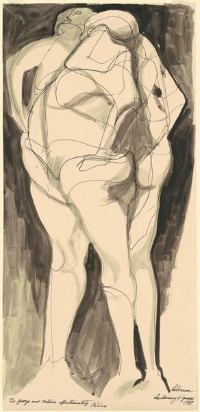 Curator: Let's turn our attention to this "Untitled" ink drawing, a portrait of sorts created by Jean Cocteau. The loose linework almost seems to set the figure adrift. Editor: Adrift is right. It feels… unfinished, yet whole somehow. Like a dream you’re struggling to remember but the essence is vividly present. Ethereal, even. Curator: Precisely. Cocteau’s handling of the ink medium is really interesting here. Note the lack of traditional shading; it relies more on these very deliberate lines to suggest form and movement. You can really feel the artist's hand and the labor involved in each mark. It brings a rawness and immediacy. Editor: It's almost like he's tracing a ghost, capturing an elusive feeling instead of striving for perfect representation. Makes you wonder, what did *he* want us to feel looking at this? Did he struggle, perhaps, in the making? I feel his vulnerability so intensely here. Curator: Possibly, and the work of making the invisible, visible comes through powerfully here. Considering the tools he would have been working with — the inks available at the time, the quality of paper. These influenced the final image. Editor: I love thinking about that; how humble tools can unlock an intimate realm, like holding whispered secrets. To find beauty, emotion with just ink... magical. Curator: The simplicity of material speaks volumes here. This drawing really illuminates Cocteau’s process and challenges conventional portraiture with his unique approach. It offers more than just likeness—a captured energy of his vision, if you like. Editor: Right. I’m just captivated. Each viewing unearths another layer, it's an exquisite and ongoing dance. Curator: Indeed. I’m left appreciating not just the final result but also all that has happened for it to exist as we see it today. Editor: Exactly. An inspiring invitation to observe. Now *that*’s the type of beauty to truly savor.