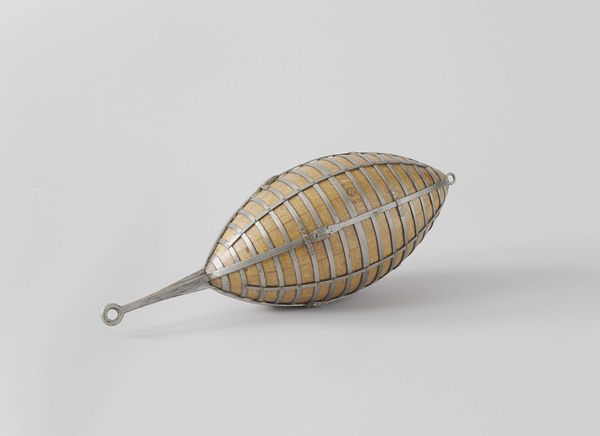 This model of a buoy, crafted by 's Rijks Algemeen Betonningsmagazijn, features a striking, torpedo-like shape, built from wood and reinforced with metal bands. The object's form, reminiscent of a womb or seed, speaks to themes of protection and guidance across treacherous waters. This is not unlike the ancient mariners who painted eyes on their ships, seeking divine protection. The eye motif, a symbol of vigilance, reappears throughout history—from the Eye of Providence to the protective eyes on ancient Greek vessels. The metal bands serve a practical purpose, yet they also evoke images of binding and security, mirroring the psychological need for containment and control. Such a form, floating amidst the vastness of the sea, taps into our collective anxieties about the unknown depths and the need for safe passage. It reminds us that even the most functional objects can carry profound symbolic weight, bridging the gap between the practical and the primal.