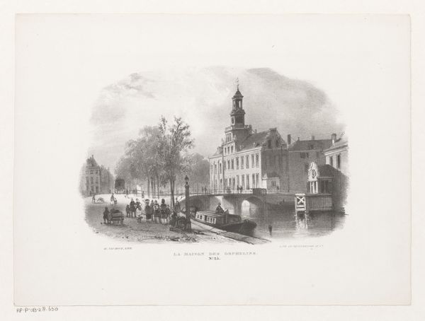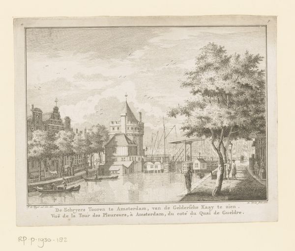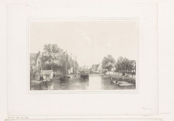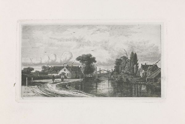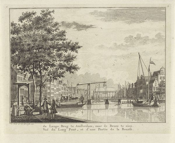 Isaac Weissenbruch made this cityscape with a bridge and two ships using etching. The linear quality of the printmaking process is evident in the intricate details of the buildings, bridge, and boats. The composition is built up from a multitude of tiny, precise marks. The etched lines give the image a soft, almost dreamlike quality, quite different from a photograph. Weissenbruch's choice of etching as a medium is significant, as it allowed for the creation of multiple impressions of the same image. This aligns with the rise of print culture in the 19th century. Through his skilled use of line and tone, Weissenbruch captured a sense of place and atmosphere, inviting viewers to contemplate the relationship between the urban environment and the natural world. Ultimately, the etching invites us to reflect on the ways in which art can both represent and shape our understanding of the world around us.