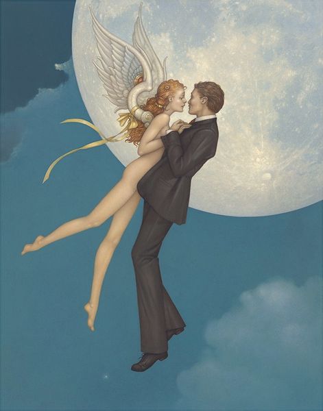 Robert Maguire painted this image, “Defiant Angel,” most likely in the mid-twentieth century, using oil on board. Maguire was known for his cover illustrations for pulp fiction novels. The qualities of this image– the idealized figures, theatrical lighting, and the intensity of the emotion– reflect the demands of mass production. The artist would have had to work quickly and efficiently, and to an established formula. Oil paint is forgiving and allows for layering, so this was likely Maguire’s chosen medium. What’s interesting is the way that these constraints resulted in a particular aesthetic. The smooth, almost airbrushed finish is an integral part of the image’s appeal. The painting is more than just a reproduction, the artist had to know how to do this, with their hands. So it’s worth considering how the worlds of craft, design, and mass production are deeply intertwined.
