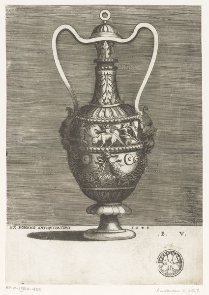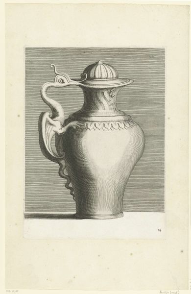 Here we see "Schenkkan met vrouwenhoofd op deksel," or ewer with a woman's head on the lid, created by Françoise Bouzonnet in the late 17th century. Bouzonnet was a French printmaker working in a time when women artists had to navigate significant social barriers. The print depicts an ornate ewer, crowned with the head of a woman. It is neoclassical in style, a style which often evokes ideas of virtue and heroism. Yet, the presence of a female figure complicates these associations by drawing connections between domesticity and larger political ideals. Bouzonnet's choice to place a woman's head on the lid could be seen as a commentary on women's roles in society, literally placing a woman at the top. In a world dominated by male narratives, her work invites us to reflect on the power dynamics embedded in everyday objects. It asks us to consider whose stories are told and whose are left out.