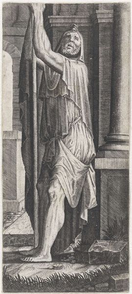 This is an engraving of Christ with a crusader's standard, making a blessing gesture, created by an anonymous artist. Consider how the figure of Christ has been historically represented. This image does not maintain traditional depictions. The artist creates an alternative narrative of Christ with the introduction of the crusader's standard. The crusades were a series of religious wars in the medieval period, reflecting deep cultural and political tensions. How does this symbol change the perception of Christ? How does it influence the understanding of religious authority, power, and identity? While Christ is commonly understood as a symbol of peace, this engraving brings forth a different understanding, creating an unsettling tension for the viewer. It invites us to reflect on the complexities of historical narratives and their impact on contemporary understandings of identity, faith, and power.