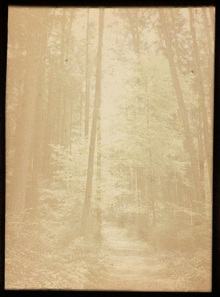 Curator: Ah, welcome! Here we have a work from between 1907 and 1930 by Adolphe Burdet, called "Gezicht in een bos, met veel herfstbladeren op de grond," which translates to "View in a forest, with many autumn leaves on the ground." It resides here at the Rijksmuseum. Editor: Okay, immediately I’m getting this whisper of faded sepia memories. There's something profoundly quiet and melancholic about this forest floor, blanketed in what looks like perpetual twilight. It’s a real memento mori moment. Curator: It’s a great example of pictorialism, the technique focusing on achieving painterly effects in photography. Think about the rise of photography in the late 19th century. The photographers were eager to prove the artistry in this new medium, and sought to imitate painting in their photographs. Editor: Imitate they did! I find myself longing for some saturated colors! I almost want to jump in and hand-tint this picture, you know? Give those leaves a punch of scarlet and gold that perhaps reflects the emotions that aren't there. It needs a shot of serotonin, doesn't it? Curator: Well, while the tones may seem muted now, such subdued hues would have appealed to the aesthetic sensibilities of the early 20th century, suggesting depth of feeling while reinforcing a sense of romanticism. Naturalism was en vogue at the time. This aesthetic also promoted a type of escapism, something nature has historically symbolized. Editor: That escape doesn't quite come across to me here. It feels claustrophobic in a way, maybe because there’s not that sky exposure usually found in typical landscape photography, instead of an encompassing thick foliage and these dead leaves. Perhaps it's reflective of inner emotional state, rather than a mere aesthetic preference? Or maybe just allergies kicking in, who knows? Curator: An intriguing idea! Perhaps Burdet was subconsciously expressing more complex emotions concerning this period? Or were they influenced by outside events? I mean, just consider what’s happening at the beginning of the artwork's creation. Industrialism is shifting artistic focus, societies are on the precipice of turmoil. How could that not have affected their imagery? Editor: Exactly! So, maybe, beyond its art historical value, this piece reminds us that even in attempting to capture the "natural," we're really capturing a slice of the cultural soup of that time period! Or it really is just hay fever. I guess we will never know! Curator: Indeed, there's a wonderful complexity here.