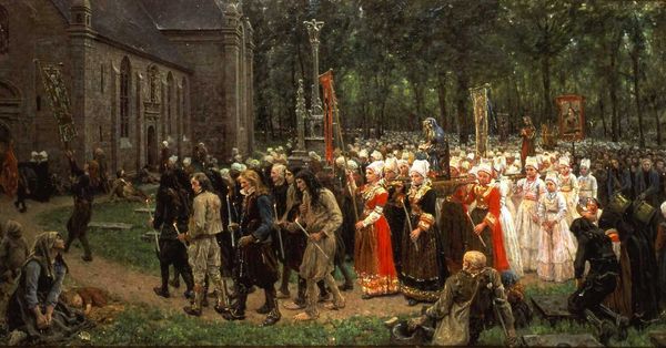 Ilya Repin captured this 'Religious Procession in Kursk' with oil on canvas. Observe the banners held high amidst the throng. These are not mere decorations; they are icons, symbols of faith, reminiscent of the labarum carried into battle by Constantine, adapted from pagan symbols to represent the Christian God. Notice how the act of carrying sacred objects – reliquaries, icons – echoes ancient rituals from cultures across the globe. Think of the Ark of the Covenant, a powerful symbol carried by the Israelites. Here, in Kursk, the faithful carry their reliquaries, seeking divine favor. This procession is not just a religious act but a collective emotional outpouring, deeply rooted in humanity's need for the sacred, a need that transcends time. The repetition of such acts throughout history reveals a cyclical pattern, demonstrating that while the forms may change, the underlying human impulse to connect with something greater remains constant.
