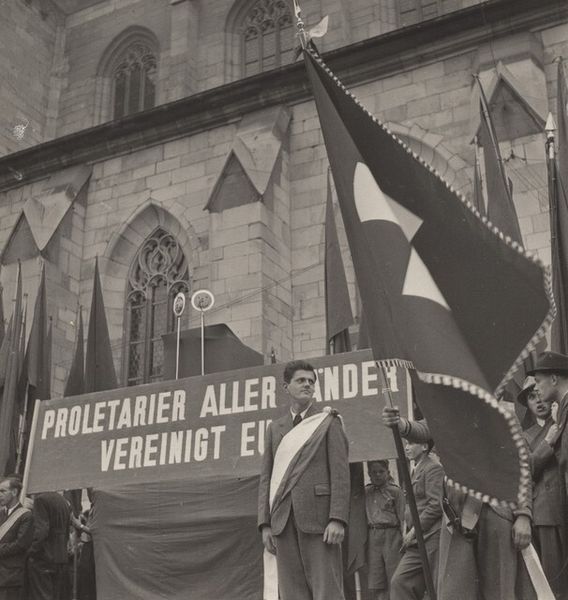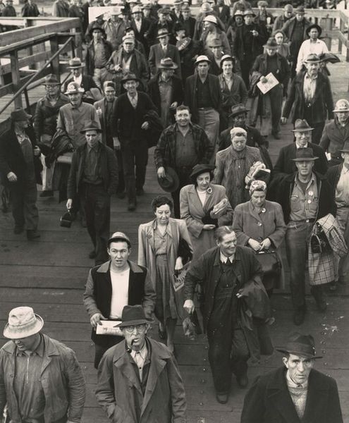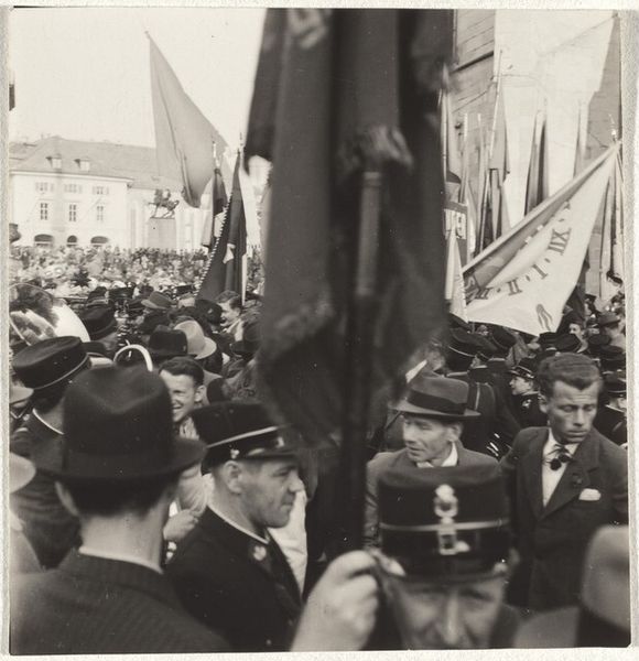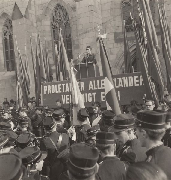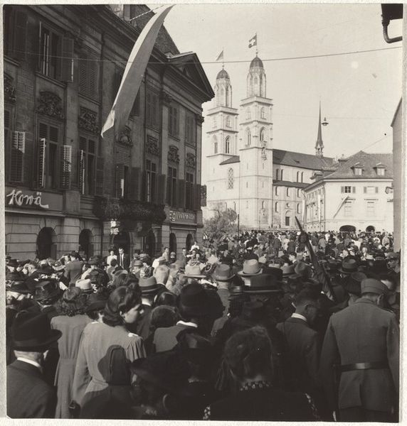 This photograph, Zurich, by Robert Frank, captures a crowd scene, likely sometime in the mid-20th century, with what looks like a protest or gathering in front of a grand, gothic building. What strikes me is the density of the image, the way Frank crams so much information into a small frame. It's a bit like when I'm painting and I keep adding layers, obscuring what's underneath, until the whole thing feels both chaotic and resolved. There's a banner, and a sea of faces, each with their own story, their own reasons for being there. The monochrome palette adds to this sense of compression, turning everything into a field of grays and blacks. Look at the faces, they emerge from the grainy texture. It reminds me of how the German artist Gerhard Richter uses blur in his paintings to convey a sense of memory and transience. Frank is doing something similar here, using the graininess of the film to suggest the fleeting nature of the moment, the way a crowd is always in flux, always changing. What is so great about art is that it doesn’t have to have all the answers. It leaves space for us to think and feel.