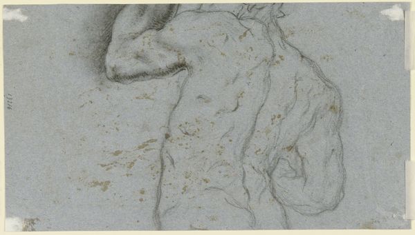 Editor: This is "Lost Sketch of a Composition with Vase and Pitcher" made sometime between 1625 and 1677 by Heinrich Dittmers, and it's a pencil drawing. It feels more like a ghostly echo of a still life. The blue paper enhances the dreamy quality. What do you make of this wispy image? Curator: It's like stumbling upon a forgotten thought, isn’t it? Dittmers isn't just showing us a vase and a pitcher; he's giving us access to his creative process, his hesitations, the very first breath of an idea. It feels so intimate, like he’s whispering to us across centuries. Notice the confidence in some lines and the tentative, searching quality in others. Does it feel finished or incomplete to you? Editor: Incomplete, definitely. I can almost see his hand moving across the page, trying to find the right form. I imagine it's a study for something larger. Curator: Precisely. Or perhaps it’s complete in itself – a moment captured. Early sketches offer incredible insight into how an artist perceived everyday objects, transforming them through line and shadow. Imagine the scene; light playing across the surfaces. It reminds me that even the simplest subjects, seen through an artist's eyes, can hold profound beauty. Did you notice anything unexpected? Editor: I am surprised by the wiggly line right above the objects, at the top, which I cannot interpret… Perhaps a line to test the medium, a visual 'tuning fork'? Curator: Haha, a tuning fork indeed! The joy of the drawing lies also in the possibility of unexpected. Seeing a piece like this always prompts me to grab my own sketchbook, reminding me to embrace the beauty of impermanence. Editor: Me too, like catching lightning in a bottle... it invites one to look and look, imagining a myriad of forms out of a single glimpse!