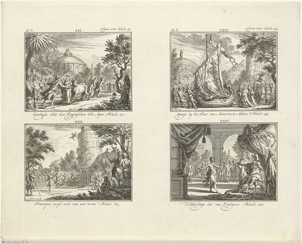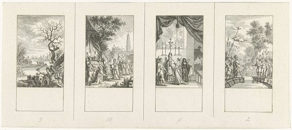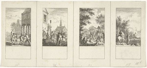 These four scenes from Dutch history were etched by Simon Fokke, sometime before his death in 1784. Etching, like engraving, is an indirect method of making an image. A metal plate is coated with a waxy, acid-resistant substance called a ‘ground’. The artist then scratches through the ground with a needle, exposing the metal. When acid is applied, it bites into the exposed lines, creating grooves. This linear process is a contrast to the images themselves, which are full of drama and incident. The acid acts almost like a tiny chisel, pushed by the etcher's hand, creating a narrative through labor. You can see the amount of work involved in the production process. It required skill and patience to achieve this level of detail. Fokke's series highlights the power of the printed image, which could circulate widely and shape public opinion. This was an important function of craft in the 18th century, challenging any simple distinction between the so-called ‘fine’ and ‘applied’ arts.