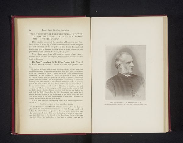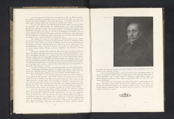 This portrait of Charles-Louis-Joseph-Xavier de la Vallée Poussin is captured within the pages of a book, through the monochromatic process of print. The subtle gradations of tone that render his likeness speak to a mastery over the medium. It's fascinating how the artist uses the printed surface to evoke texture and form. Look closely, and you’ll see how the density of the marks varies to suggest the fall of light across his face, giving shape to his impressive mustache. It reminds me of how painters build up layers, the printmaker here creates depth through careful distribution of ink. The portrait shares an intimacy with the viewer, drawing us into a kind of silent dialogue with the past. The effect is not unlike the quiet intensity you find in the etchings of Whistler or the lithographs of Odilon Redon. Ultimately, this image invites us to reflect on the ways in which art, in all its forms, allows us to connect with figures and ideas that transcend time.