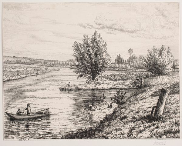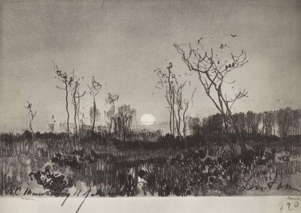 Isaac Levitan rendered ‘Gray day. River.’ in an indeterminate year using charcoal on paper. The drawing immediately strikes us with its muted tones and somber mood, achieved through Levitan’s masterful manipulation of charcoal. The composition, with its emphasis on the horizontal lines of the river and land, evokes a sense of stillness and quiet contemplation. The artist’s application of charcoal varies from soft, smudged strokes in the sky to more defined, textured marks in the foreground vegetation. This contrast creates depth and invites the viewer's eye to move across the landscape. Levitan's use of light and shadow is particularly noteworthy; the gray sky casts a diffused light that softens the scene, while darker areas provide contrast and definition. The overall effect is one of understated beauty, capturing the subtle nuances of the natural world. The piece resonates deeply with a sense of melancholic introspection, suggesting a world in constant flux, where meaning is provisional and open to personal interpretation.