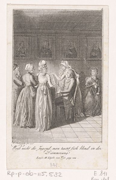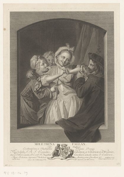 This print by Pierre Charles Ingouf, made sometime in the late 18th century, depicts an interior scene of an affluent family in France. Note the title: "La Mere Contente" or "The Contented Mother". It's interesting to consider how images like this functioned within the social and cultural context of their time. The image presents a vision of domesticity, perhaps intended to reinforce the idea of family happiness and contentment. The presence of luxury items and the carefully arranged interior indicate the family's wealth and status. It invites questions about the relationship between social class, family values, and the representation of women in art during this period. We might want to know more about the role of women in the French aristocracy and how images like these shaped perceptions of femininity and domestic life. Understanding its meaning requires historical research into 18th-century French society, including its social classes, gender roles, and cultural values.