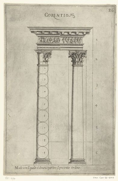 Curator: This exquisite pencil and ink drawing, dating roughly from 1657 to 1743, presents an architectural perspective, specifically, "Porch of a Palace with Corinthian Columns." It is attributed to Ferdinando Galli Bibiena. What are your immediate thoughts? Editor: It feels almost ghostly, like peering into a faded memory. The delicacy of the lines lends a dreamlike quality, though the imposing architecture hints at power and grandeur. Curator: That contrast is key. Bibiena worked during a time of immense social stratification. Architectural drawings like this served not merely as blueprints, but as assertions of power, wealth, and often, exclusionary aesthetics. The very emphasis on classical ideals connects to a desire for legitimacy. Editor: The columns themselves are potent symbols. In Western art they represent stability, order, and a link back to classical empires. This feels aspirational, even in its faded form. Did audiences understand this iconography at the time? Curator: Absolutely, though in ways shaped by their own social positions. For the elite, it reaffirmed their status; for others, it could represent unattainable ideals or even imposed power structures. Consider the use of perspective, the way it seems to force the viewer's eye towards a vanishing point. It can symbolize control – of space, of vision, and metaphorically, of social hierarchies. Editor: And then the oval format, which seems to be framing the image almost like a distant dream… It creates a separation, reinforcing the feeling of observing something both magnificent and inaccessible. Curator: Precisely. Also note the use of light and shadow, though subtle, which amplify the sense of depth and drama. Bibiena masterfully uses these elements to subtly enforce visual authority, placing the architecture not just within a physical space but a conceptual and social one. Editor: Reflecting on it, the drawing resonates beyond a mere depiction of architecture; it represents layers of ambition, power, and cultural values—encoded in its lines. Curator: Yes, Bibiena's work becomes a valuable lens for understanding the social dynamics inherent to the built environment and artistic production of his era.