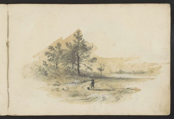 Editor: So, here we have Matthias Parré’s "Landschap met plas," created around 1838 using pencil. It’s incredibly serene. Almost dreamlike in its softness. What catches your eye when you look at this? Curator: That misty atmosphere absolutely sings to me. It’s as if Parré isn't just drawing a landscape, but capturing a feeling. Did you notice how he uses the pencil strokes, almost like whispers, to suggest the texture of the leaves and the dampness of the air? It feels incredibly intimate, doesn't it? It makes me think of childhood summers spent exploring woods like these. Makes you want to just *be* there, doesn't it? Editor: It really does. I'm struck by the contrast between the dark, solid foreground and how the trees sort of fade into the background, losing their edges. Was that a common technique at the time? Curator: Absolutely. Remember that artists during this period were very keen to convey depth and recession in their landscapes. It's almost like the landscape exhales into the distance. It is worth reflecting about Romanticism and their desire to convey emotions triggered by grand landscapes in opposition to urban areas... Editor: That's beautiful. Thank you for your insights. Curator: My pleasure. I found the work speaks to the way artists perceived and presented natural scenes in that time. What a gem of the Romantic period!