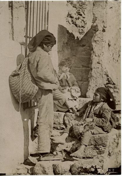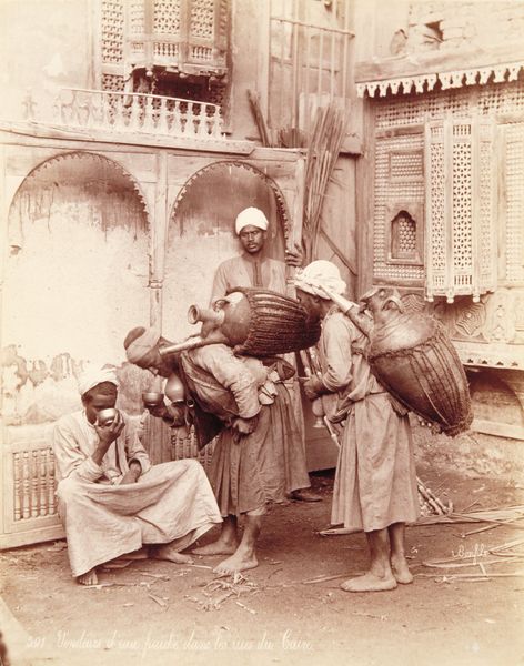 Juan Laurent produced this photograph of a water carrier with a donkey in Córdoba, Spain, in the 19th century. The image presents us with more than just a candid street scene; it offers insight into the social and economic structures of the time. Photography during this period often focused on capturing types, recording what were seen as picturesque aspects of everyday life. This image is rich in cultural references and historical associations. Water carriers were a common sight in Spanish cities, providing a vital service in times before modern plumbing. The work was physically demanding and often associated with the lower classes. By documenting such scenes, photographers like Laurent contributed to a visual record of Spanish society. To fully understand this photograph, one could delve into municipal records, travelogues, and sociological studies of 19th-century Spain. The meaning of art is contingent on social and institutional context.