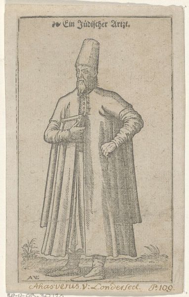 Editor: Here we have Gentile Bellini's "A Turkish Janissary" from 1481, a drawing rendered in pencil. The figure, with his distinctive headwear, strikes me as both imposing and somehow vulnerable. How do you read this portrait? Curator: The Janissary's towering hat immediately strikes me, and acts as a potent symbol. The image recalls both the Ottoman Empire's military strength, and how its otherness would be perceived in Europe at this time. Notice, too, how the artist captures a certain humanity in the figure’s gaze. Does his expression subvert your initial reading? Editor: Yes, definitely. There's a real person there, not just a symbol of power. It's more complex than I initially thought. Is it typical for Bellini to portray subjects this way? Curator: Bellini, known for his detailed observations and cultural exchanges with the East, injects humanity into his subjects. I believe the way the face is rendered provides an intimate feel for the subject; despite the clear marker of cultural identity, we can still recognize the sitter as an individual. Is this how you see it? Editor: Yes, now I see it more clearly! The contrast between the general and the specific, the powerful and the vulnerable, is really compelling. Thanks! Curator: Absolutely. The artwork reveals not only a Janissary, but also reveals how the Janissary might have been seen and understood by the Italian Renaissance world.