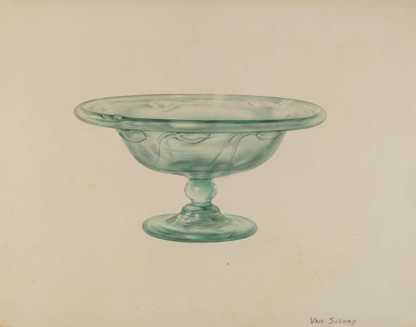 John Tarantino made this compelling artwork, *Compote* with watercolor. It’s a painting that makes you think about seeing and how seeing becomes knowing. The cool palette – the blues and greens – gives the object a certain kind of weight, but also a kind of lightness; it’s like looking at glass. The marks are smooth, and they create the illusion of a reflective surface. The marks show the artist is so in tune with the process, it’s almost meditative. It reminds me that the act of artmaking, of seeing, can be its own kind of knowledge. The color choice is just perfect, a stroke of genius. It makes me think of Manet, particularly in the way the composition is arranged. And, just like Manet, the interpretation is open and never set in stone.
