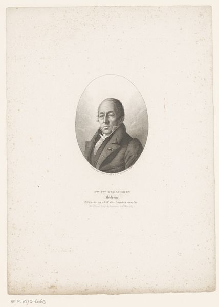 Editor: Here we have "Portret van Pierre François Keraudren" made sometime between 1818 and 1832 by Charles Aimé Forestier. It's an engraving, so a print. The precision of the lines is quite striking. What's your perspective on how the medium influences the message here? Curator: Considering it's an engraving, we need to examine the labor involved. Think about the painstaking process of carving those lines into a metal plate. This isn't some quick sketch; it's a deliberate act of production. How might that affect our reading of Keraudren's status? Editor: Well, it certainly suggests he was someone important, deserving of that level of skilled labor and material investment. Was engraving a common medium for portraiture then? Curator: Yes, but think further. Who had access to engravings? This image, existing as a print, would have circulated, making Keraudren's image accessible to a wider, though still relatively elite, audience. This process of reproduction impacts his social visibility and perhaps even his perceived authority. Are we looking at a democratizing effect here or simply a broader distribution of power? Editor: That’s a great point. The act of reproduction changes the meaning itself. It's not just about Keraudren anymore, but about how his image is consumed and distributed. I hadn't considered that. Curator: Exactly. And considering Neoclassicism's emphasis on order and reason, how does the very *act* of engraving, a highly controlled and precise process, reinforce those values materially? Editor: So the material and the process aren’t just secondary to the image; they actively shape our understanding of the subject and the values of the time. Thanks, that makes me think about prints in a whole new way. Curator: Precisely. Analyzing the materiality encourages us to question what stories the artwork tells beyond its surface representation.