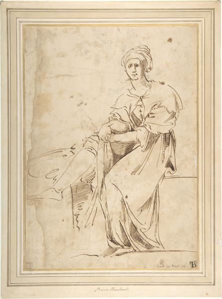 Curator: This is Merry-Joseph Blondel's "The Punishment of Niobe," a pencil drawing made between 1822 and 1828. It currently resides at the Metropolitan Museum of Art. Editor: It's intensely melancholic. The draping fabric and soft rendering create a sense of oppressive stillness. There is an undeniable focus on mourning. Curator: Absolutely. The story of Niobe, from Greek mythology, is steeped in themes of hubris, loss, and divine retribution. Niobe, a queen with fourteen children, dared to compare herself to the goddess Leto, who had only two. Editor: I see the bow of Apollo immediately. Blondel includes that as well as what seem to be other arrows raining down? I'm struck by the loaded nature of the arrows as a symbol of both divine power and the utter vulnerability of mortals who dare defy it. Curator: Yes, Apollo and Artemis, Leto's children, exacted a brutal revenge, slaying all of Niobe's offspring. Blondel captures the moment when Niobe clutches one of her dying daughters, a desperate, futile act of protection. This print functions not only as narrative but also as social commentary around class, entitlement, and shame. Niobe's tragedy stems from boasting, which leads to punishment, mirroring historical power dynamics of the era. Editor: The weight of history, social expectations, and the sheer inescapability of fate—it’s all etched into Niobe's anguished face. Notice, too, how Blondel uses light to emphasize the figures' idealized beauty, which juxtaposes harshly with their violent demise. And, in terms of iconography, Niobe herself, in later centuries, came to be seen as a representation of maternal grief. Curator: Indeed. The artwork underscores how mythology reflects broader anxieties around power, gender roles, and social hierarchies. Ultimately, Niobe's punishment reminds us that transgression always carries a price. Editor: Yes, Blondel's study urges us to acknowledge that these timeless visual motifs about defiance and consequence—hubris and revenge—continue to shape our modern discourse.