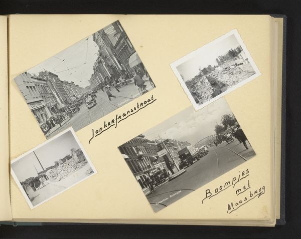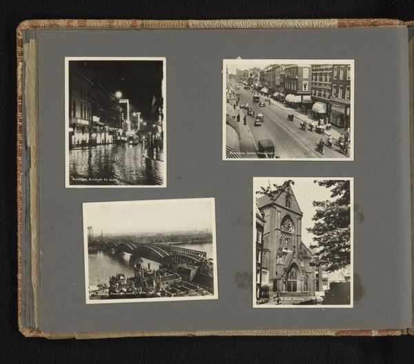 Curator: What we have here is an interesting gelatin-silver print dating to 1934. It is entitled "Begrafenisstoet van prins Hendrik in Den Haag en het graf van Willem van Oranje in de Nieuwe Kerk te Delft," which translates to "Funeral Procession of Prince Henry in The Hague and the tomb of William of Orange in the New Church in Delft." It is currently housed at the Rijksmuseum. Editor: The contrast of these combined images speaks volumes. On one side, an impressive funerary march along the street seems endless. And on the other, this grandiose structure stands like a silent temple in all its architectural glory. The solemnity of both is palpable, isn't it? Curator: Indeed. It uses a visual binary typical of early photojournalism. Note the strong horizontal lines in the procession scene versus the soaring verticality within the church. These contrasting formal choices emphasize both collective mourning and individual legacy. Editor: I wonder about the political climate in 1934. A carefully curated image of royal continuity—both of a recent and historical figure—would reinforce ideas about the established state and nationhood, which in that era meant also responding to fears of the rise of totalitarianism. The use of modernist photographic style gives it also a propagandistic quality. Curator: A keen point. One might further explore how the photographer employs light and shadow to create a sense of depth, lending each scene a certain gravitas. Note the distribution of light on the various elements within the tomb architecture to produce that effect. Editor: It prompts one to consider whose narrative is being prioritized. Are we witnessing genuine mourning, or is it a staged performance of power? Whose voices were deliberately left out of these images, and why? And if we don't reflect upon those deliberate omissions, aren't we only supporting old social hierarchies? Curator: A good point about our role in perpetuating these views. Nonetheless, returning to the photographic qualities themselves, one might consider this work to demonstrate a sophisticated understanding of photographic tone. Editor: Seeing it from a social perspective gives an image that was produced ninety years ago an unusual amount of cultural relevance, right? Thank you. Curator: My pleasure.