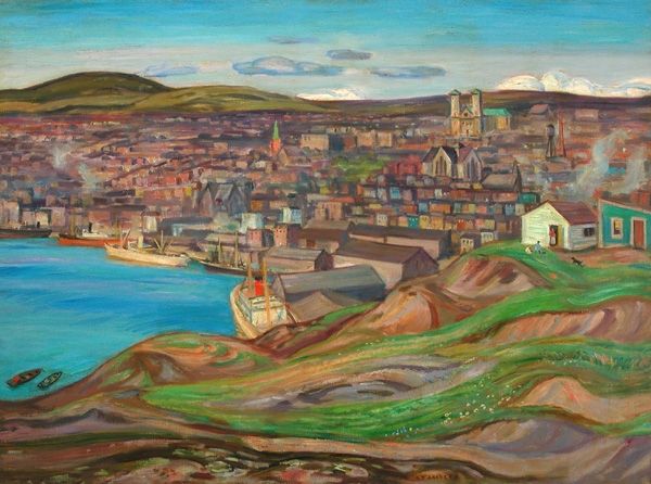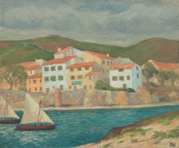 Editor: We’re looking at Rupert Bunny’s “Blue Day, Bandol,” painted in 1929. It's an oil painting depicting a coastal cityscape in the south of France, radiating a tranquil and almost dreamlike quality. What strikes you most about this work? Curator: What immediately grabs me is its reflection of the era's sociopolitical undercurrents through its idyllic veneer. Bunny, an Australian expatriate, paints a picture-postcard scene, seemingly detached from the interwar anxieties brewing across Europe. But is it truly detached? Or is this deliberate escapism, a privileged gaze seeking solace in beauty, while the world teeters on the brink? Editor: That's an interesting point. I hadn't considered the element of escapism. I was more drawn to the pure aesthetic pleasure of the composition, the interplay of blues and terra cottas. Curator: Precisely. Consider also how the plein-air style—traditionally associated with freedom and immediacy—might also symbolize the constraints of privilege. Who has the liberty to simply observe and paint en plein air? Whose stories are absent from this ostensibly universal vista? Can we even use the term universal to apply to art produced by white cis men when in fact many voices have been suppressed in art spaces for decades? Editor: So, you’re suggesting we shouldn’t take the painting at face value but rather examine its social context and the artist's positionality? Curator: Absolutely. We can appreciate the technical skill while interrogating the unspoken narratives—the power dynamics inherent in who gets to represent whom, and how. This seemingly innocuous landscape then becomes a powerful site for examining class, privilege, and the complexities of artistic representation in the early 20th century. Editor: I never would have thought to look at it that way. It really opens up a new dimension of understanding. Curator: Indeed. It's in this intersection of art history and contemporary theory that we truly unlock the potential for meaningful dialogue. Editor: Thank you. I’ll definitely be approaching landscapes differently from now on.