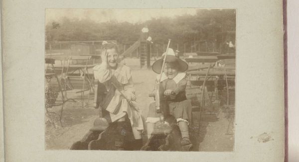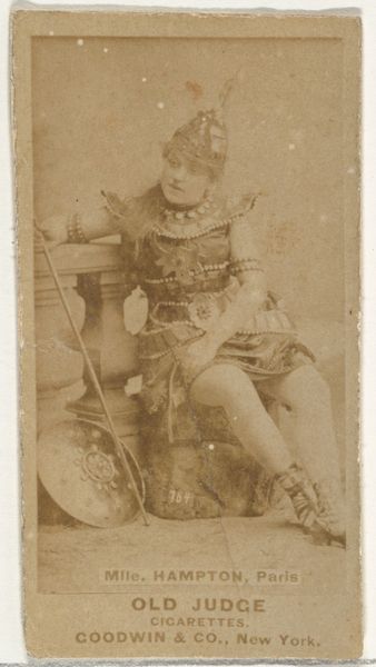 Curator: This albumen print, captured between 1843 and 1847 by Hill and Adamson, presents a fascinating glimpse into early photographic portraiture. The piece is called "The Porthole / Sergeant and Private of the 42nd Gordon Highlanders, Edinburgh Castle." Editor: My first thought is that the texture, achieved by the photographic process, creates this remarkable sense of immediacy; you feel as though you could reach out and touch the coarse wool of their uniforms. And the light is wonderful—a soft sepia wash. Curator: That immediate presence, I think, stems partly from how the soldiers’ uniforms situate them as archetypes. Their traditional Highland dress, each piece symbolic. Editor: Exactly, the labor of creation here is key to understanding this work. Think about the construction of those uniforms – each button, seam, and weave imbued with social and military history. It shows a whole economy in one frame! The iron of the cannon contrasts dramatically with the woolen fabrics. Curator: Absolutely. The cannon, standing in for the authority it projects. This type of weapon signifies British military power at that time and how a particular view of authority circulated within society through images of military occupation. It acts almost as an icon in and of itself, a visual reminder of their service. Editor: And think about the setting, Edinburgh Castle – it is more than backdrop, it's part of the whole composition and the statement of imperial power, constructed from materials hauled over generations to establish that power and authority. Curator: You've articulated how Hill and Adamson captured something far deeper than a mere physical likeness here. Editor: Indeed, by carefully examining the materials and means of production, from the iron ore in that cannon to the fabric on those soldiers, this image offers insights into the complex world it portrays. Curator: I find it intriguing to note how deeply layered meanings accrue in something seemingly simple like this—an early experiment with the photograph. Editor: Exactly; by examining material processes and social conditions, an apparently still image sparks dialogue about identity and authority.