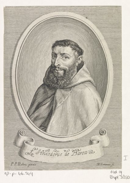 This is Cornelis Van Dalen the Younger's "Portrait of Pietro Aretino", a somber engraving on a sheet of paper, located at the Metropolitan Museum of Art. The portrait is constructed through a dense network of fine lines and cross-hatching, creating a chiaroscuro effect. The subject, Aretino, is depicted with a substantial beard that dominates the lower part of his face, drawing your eye downward. This dense concentration of lines and shading gives a sense of weight and gravity to the figure. Aretino holds a book, but the angle obscures its title, shifting focus from its content to its symbolic function as an attribute of learning and authority. The subtle gradations in tone achieved through the engraving technique adds depth, but simultaneously flattens the image, emphasizing its graphic quality. This interplay between depth and surface encapsulates the essence of printmaking, where the reproduction of an image becomes its own unique form of art. The controlled, precise lines convey a sense of order, which plays on the complex relationship between representation, reproduction, and artistic expression.