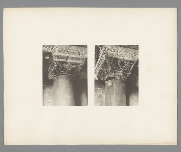 Curator: This engraving by Carl Heinrich Jacobi, titled "Korinthische zuil en een inscriptie van de San Marco in Venetië," created before 1885, offers a fascinating glimpse into architectural detail. Editor: It hits me with such solemnity, a ghost of empire staring back. The textures, like dried creek beds etched into stone. It feels ancient, and heavy. Curator: The engraving showcases a Corinthian column, a symbol of ancient classical architecture. When situating it within Venetian history, one could analyze how such elements signified a revival of imperial power and aesthetic grandeur for its patrons. How might this have affected Venetian society, and did it contribute to any contemporary theories or socio-political tensions? Editor: Good point. And maybe the artist was thinking about ruin and decay – even architectural supremacy crumbles, eh? I imagine sketching it, feeling the cool stone dust, wondering about the hands that built it. What did their lunch breaks look like? Were they unionized? Sorry, my mind wanders! Curator: Well, it's important to address labor and class. Considering that Venice at the time was a place with vast class disparities, a pillar like this may suggest that some had easier lunches than others. Editor: True, and maybe I am being blinded by how pretty the architecture is. What kind of person immortalizes that column but overlooks all of the city's real social ills? Food for thought. Curator: Indeed. Perhaps this print encourages us to consider that the physical artifacts around us carry legacies of privilege and exclusion, thus begging questions of whose histories get memorialized and why. Editor: It definitely gave me a lot to ponder! Something seemingly frozen in time keeps shapeshifting. Curator: I appreciate how our discussion has connected history with modern theoretical questions regarding class, labor, and visual memory. Thank you!