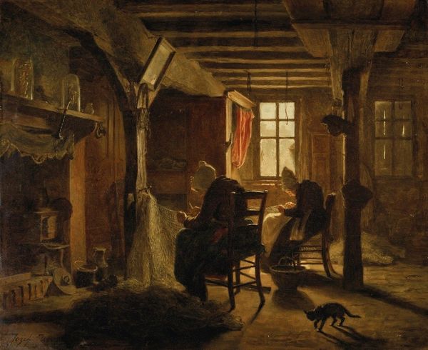 Johannes Jelgerhuis painted this view of the Distillery of Apothecary A. d'Ailly in Amsterdam. Here, the prominent cauldron and various glass vessels are not mere tools; they are symbols steeped in alchemical and pharmaceutical history. The cauldron, essential for transformation, echoes the mythical witch's brew, a vessel for metamorphosis. We can trace its lineage back to ancient metallurgy and the legend of Jason and Medea. The transformation, like the alchemist's dream of transmuting base metals to gold, signifies deep and fundamental change. The cyclical nature of this process mirrors the eternal return, the idea that history and symbols recur. This symbol resurfaces throughout art and culture. They embody our enduring fascination with transformation, healing, and perhaps, the elusive pursuit of immortality. The work stirs something deep within us, a primal memory of human desire to manipulate and understand the very essence of life.