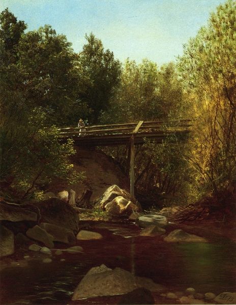 David Johnson painted “A Study, Bash Bish Falls” to capture the sublime beauty of the American landscape during a time of rapid industrialization. This work reflects the Hudson River School’s reverence for nature and its role in shaping American identity. Johnson’s decision to include a lone female figure on the bridge is particularly interesting. She embodies the intersection of gender and landscape. This woman, seemingly at peace within her natural surroundings, offers a narrative about women's relationship with nature. The falls themselves, named using an anglicized version of the local Mohican name, hints at complex questions of cultural appropriation and the displacement of indigenous people. The painting invites us to consider our relationship with the natural world and the historical narratives embedded within it. It serves as a reminder of both the beauty of nature and the layered histories that shape our understanding of it.