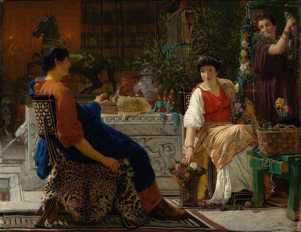 Lawrence Alma-Tadema, painted "Who Is It" with oil on canvas, a medium that perfectly suited his pursuit of classical antiquity. But while the scene depicts a plausible moment in ancient Rome, consider the artist’s own context. Born in the Netherlands, he later settled in London, enjoying the fruits of British Imperialism and industrial wealth. The painting’s smooth finish, achieved through layers of meticulous brushwork, belies this underlying context. Alma-Tadema had assistants in his studio to speed up his production, and he understood that in the modern world, even the finest handwork was intertwined with capital. The marble architecture, the women’s draped garments, even their sandals – these are all rendered with precision. Yet the painting is more than just a display of technical skill. It reflects the Victorian era's fascination with the past, filtered through the lens of contemporary labor. The artist has imbued the painting with a specific cultural significance, one that speaks to the complex relationship between aesthetics, production, and historical representation.
